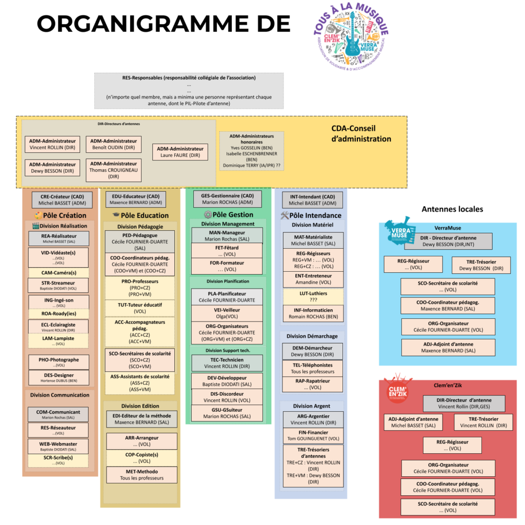Organise le rangement des instruments et du matériel présent. Il est d’une grande aide pour toute la partie technique lors des concerts, mais également au quotidien.