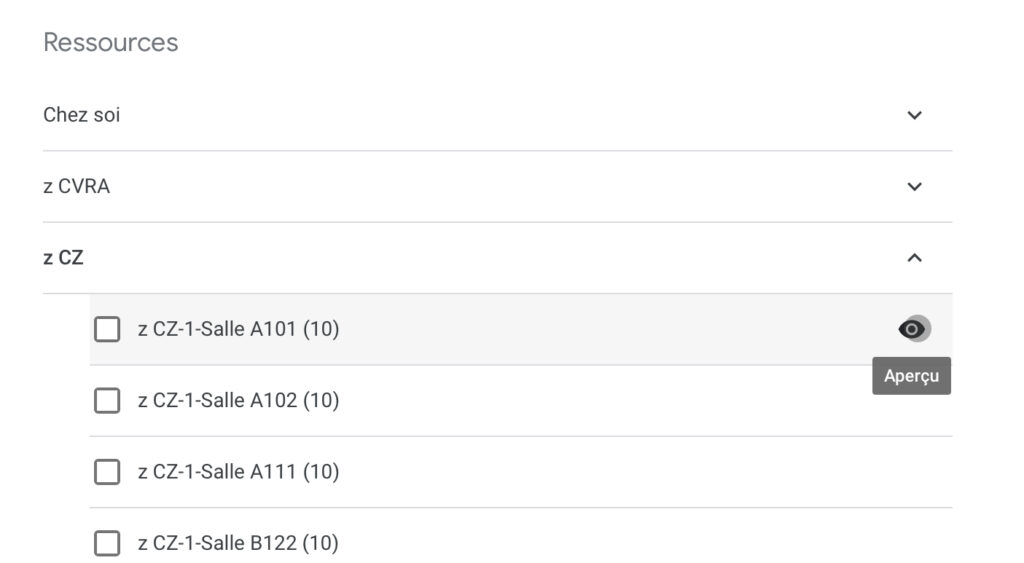Encore mieux ! Tu peux ajouter chacune des salles à ta liste d’agendas en cochant la case à gauche de la salle pour pouvoir les consulter rapidement à tout moment