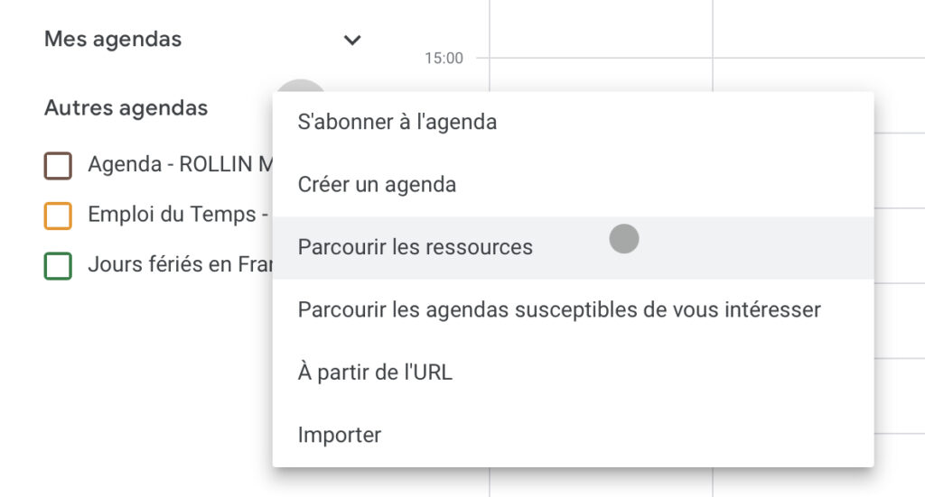 2. En dessous de la liste des agendas, dans « Autres Agendas » , cliquer sur le +