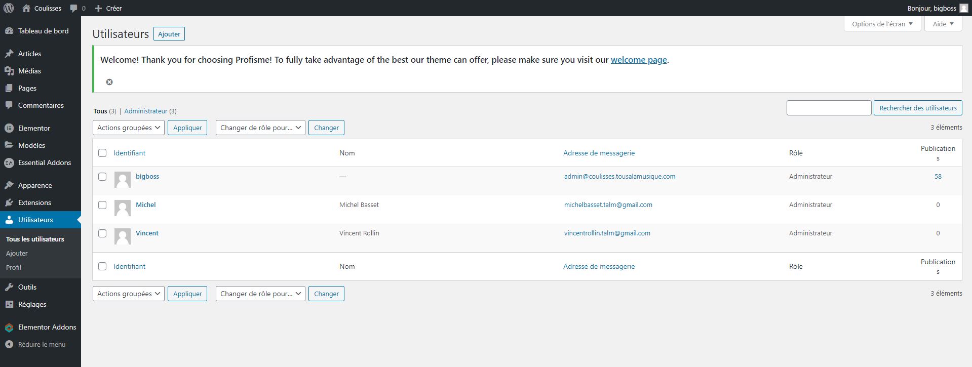 Onglet utilisateurs wordpress