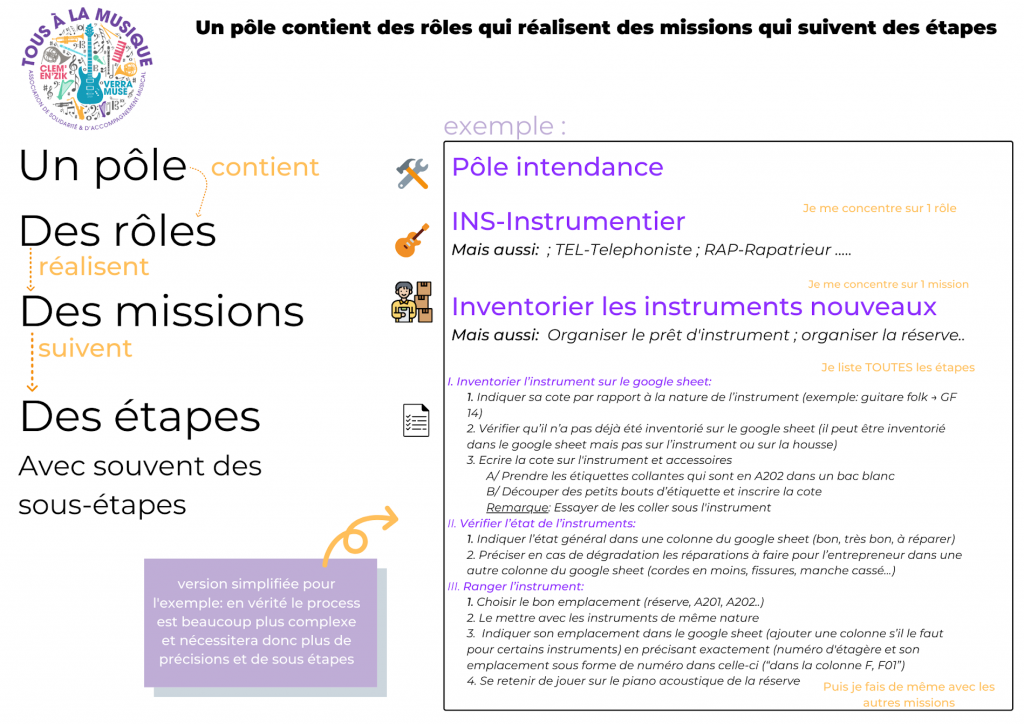 • délimiter clairement les missions réalisées par chacun des rôles, et de détailler la marche à suivre sous la forme de processes écrits, de vidéo tuto, d’image etc..